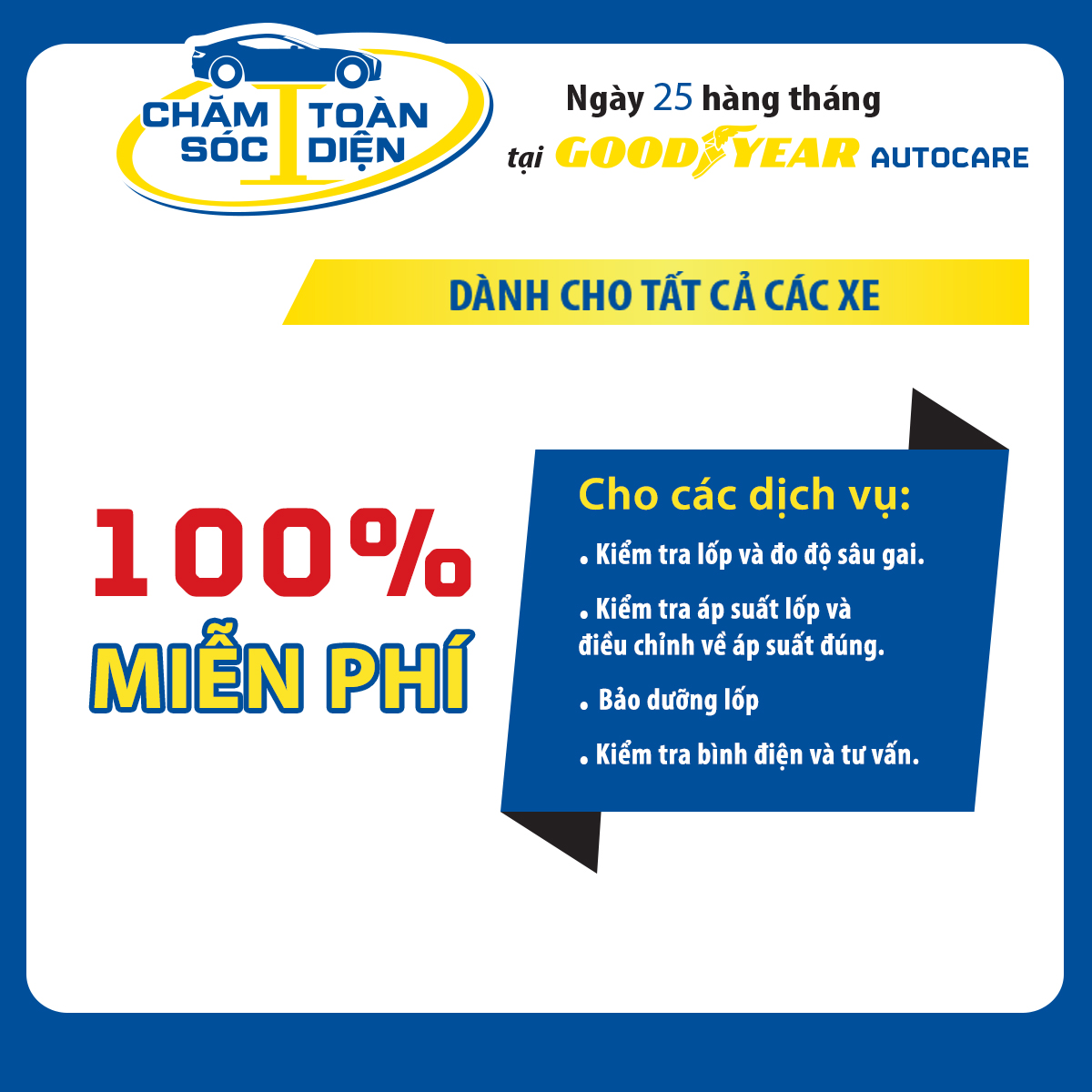 100% miễn phí kiểm tra, chăm sóc, tư vấn lốp xe và các dịch vụ khác